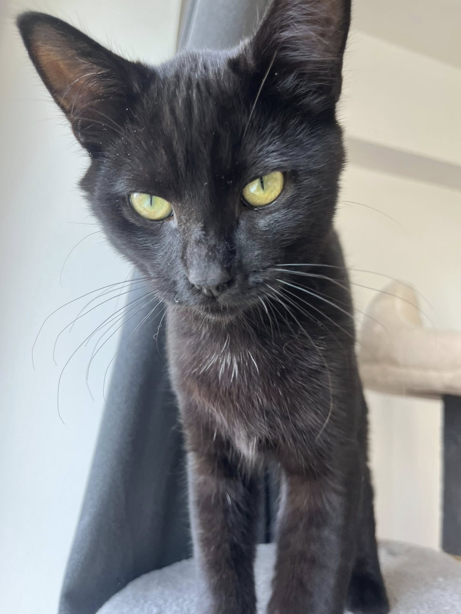 Gustave est un magnifique et adorable chaton à la robe noire et aux jolis yeux vert.