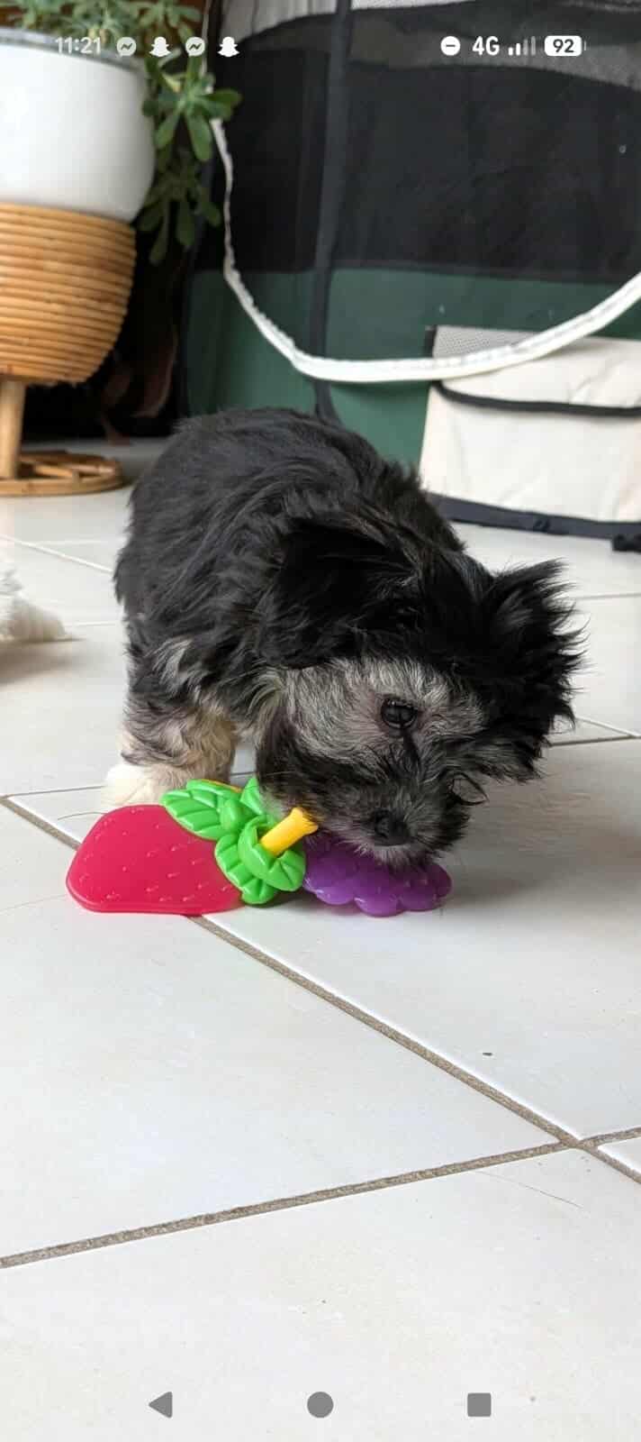 Astuce, adorable petite chienne, peut-être croisée Shih Tzu, est un véritable concentré de joie de vivre. Téméraire et curieuse, rien ne lui fait peur, pas même l’aspirateur !