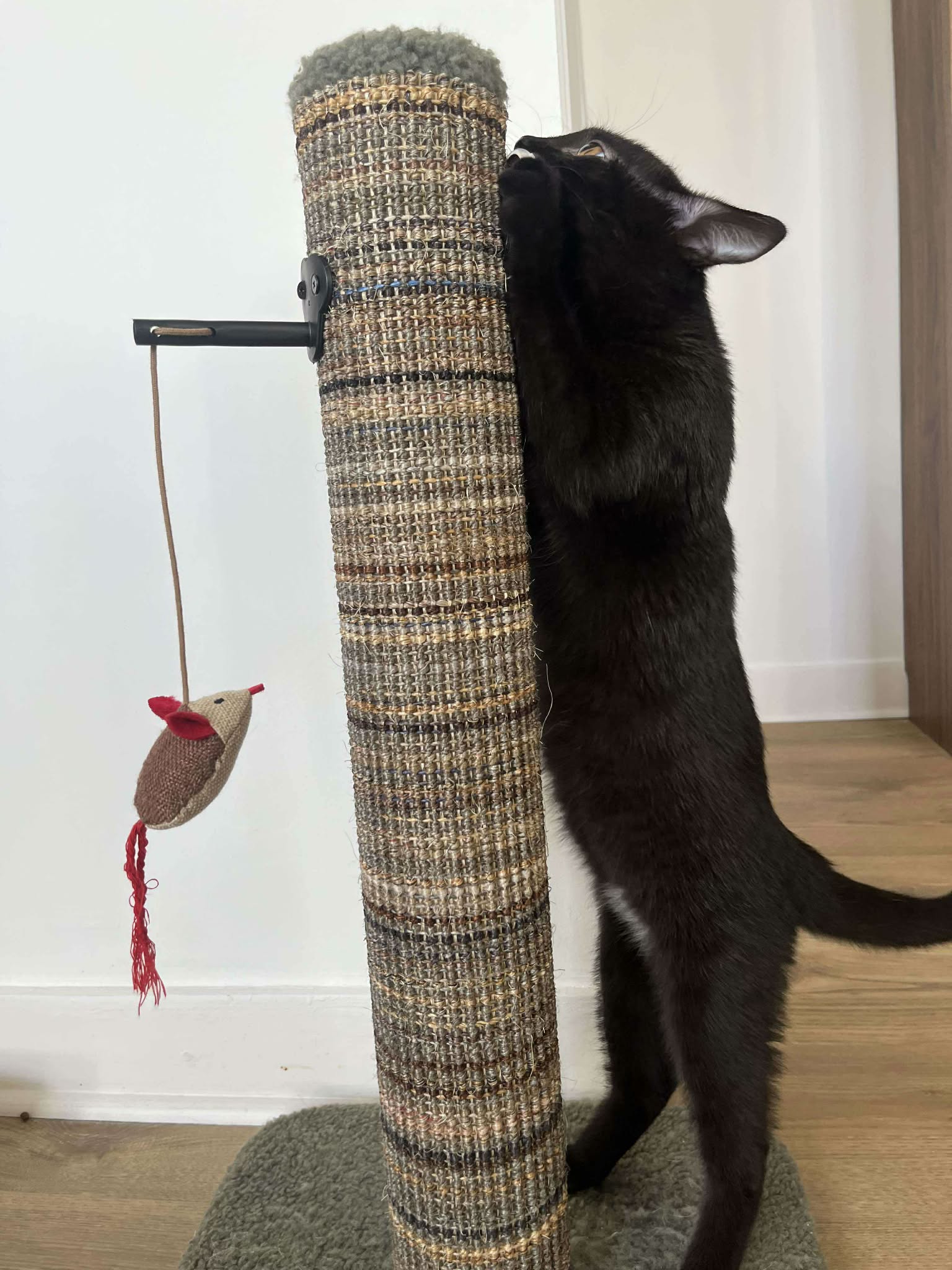 Elle apprécie particulièrement la présence des autres chats, et passera de nombreuses heures à jouer avec ses congénères. Le soir, elle vient au contact de ses humains se reposer sur le lit ou jouer (gare aux pieds qui bougent un peu trop !).