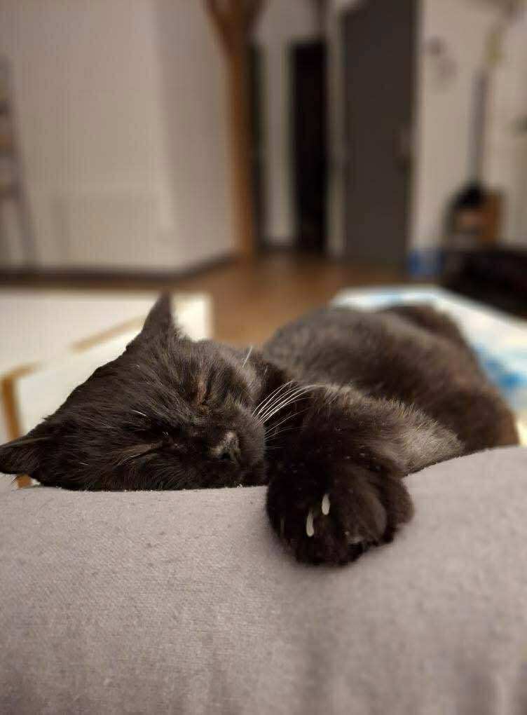 Néanmoins, c’est un chat très proche de l’humain, un brin pot de colle, un vrai chat de maison désormais !