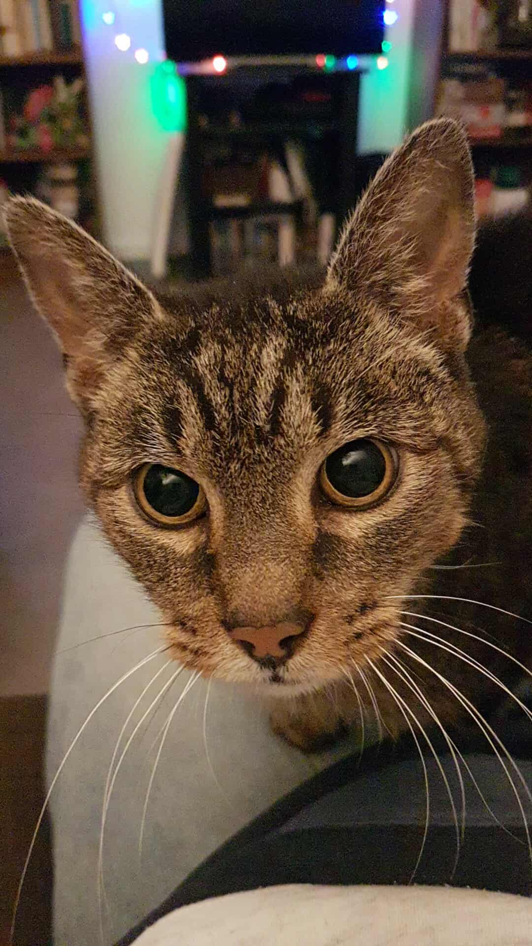 C'est un petit bout de chat qui aime passer du temps avec ses humains et vous suivra partout même dans votre lit, il attendra patiemment que vous vous réveillez pour réclamer sa portion de croquettes.