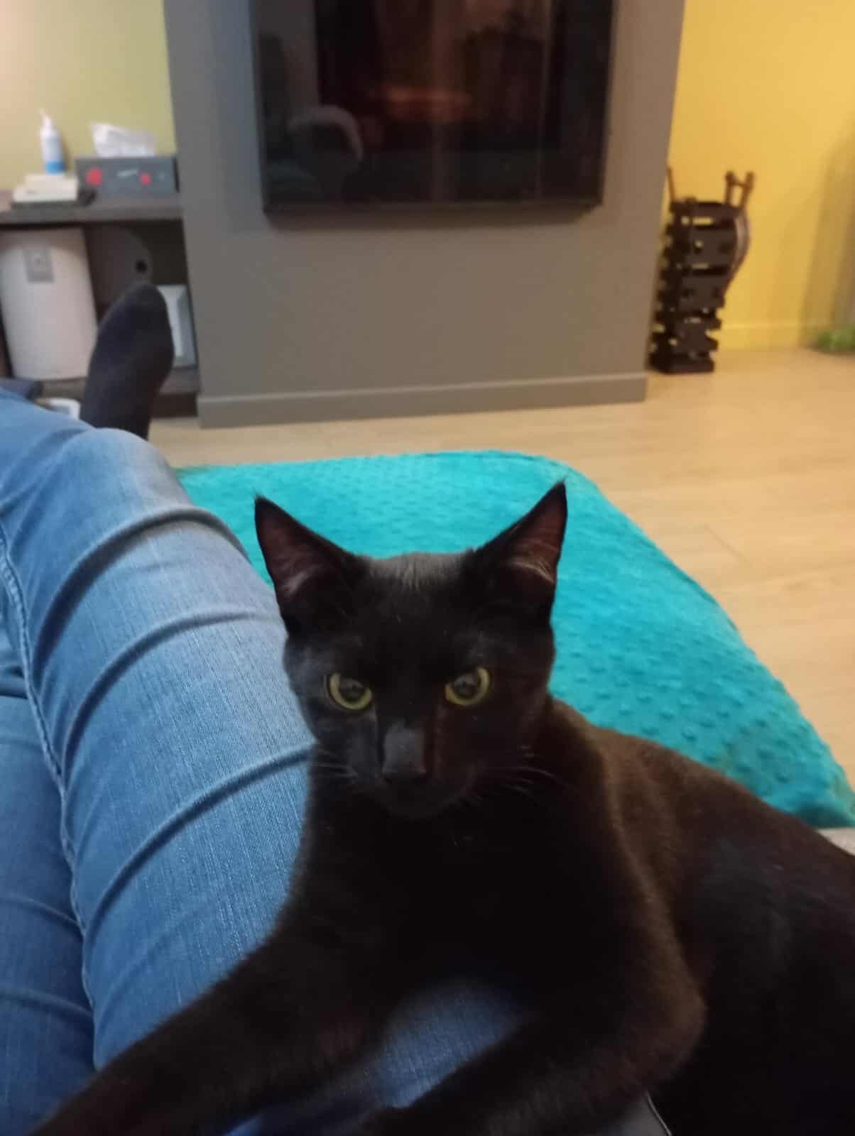 Très sociable, elle appréciera fortement la compagnie d'un copain chat et un foyer calme donc sans jeunes enfants afin d'être à son aise.