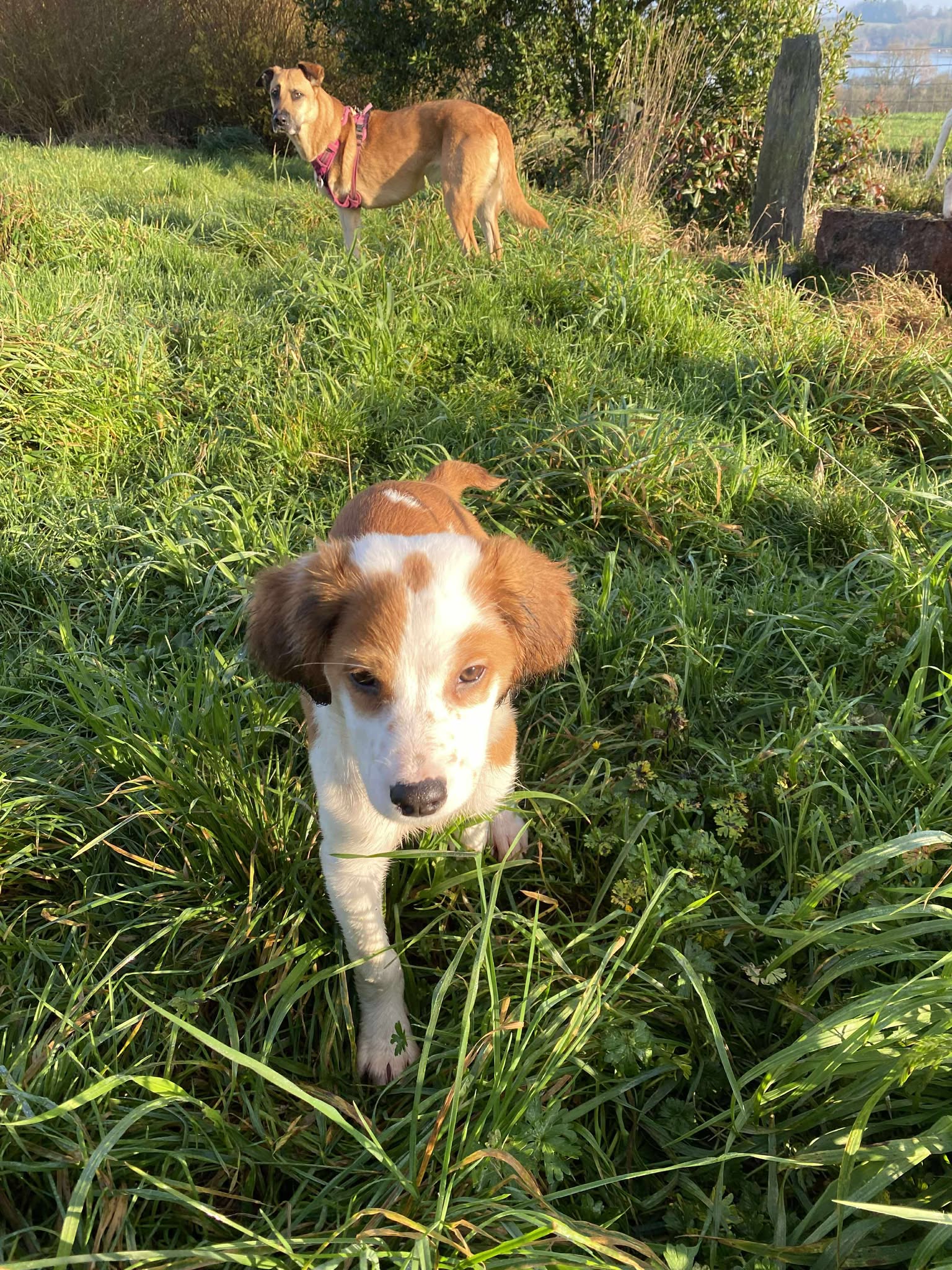 Jinu est un adorable chiot de 3 mois, croisé épagneul, tout doux et très câlin, qui apprécie par-dessus tout son confort… et surtout son panier ! D’un tempérament légèrement craintif, il joue volontiers avec sa sœur mais préfère rester proche de l’humain lors des balades : les grandes explorations en solitaire, très peu pour lui.