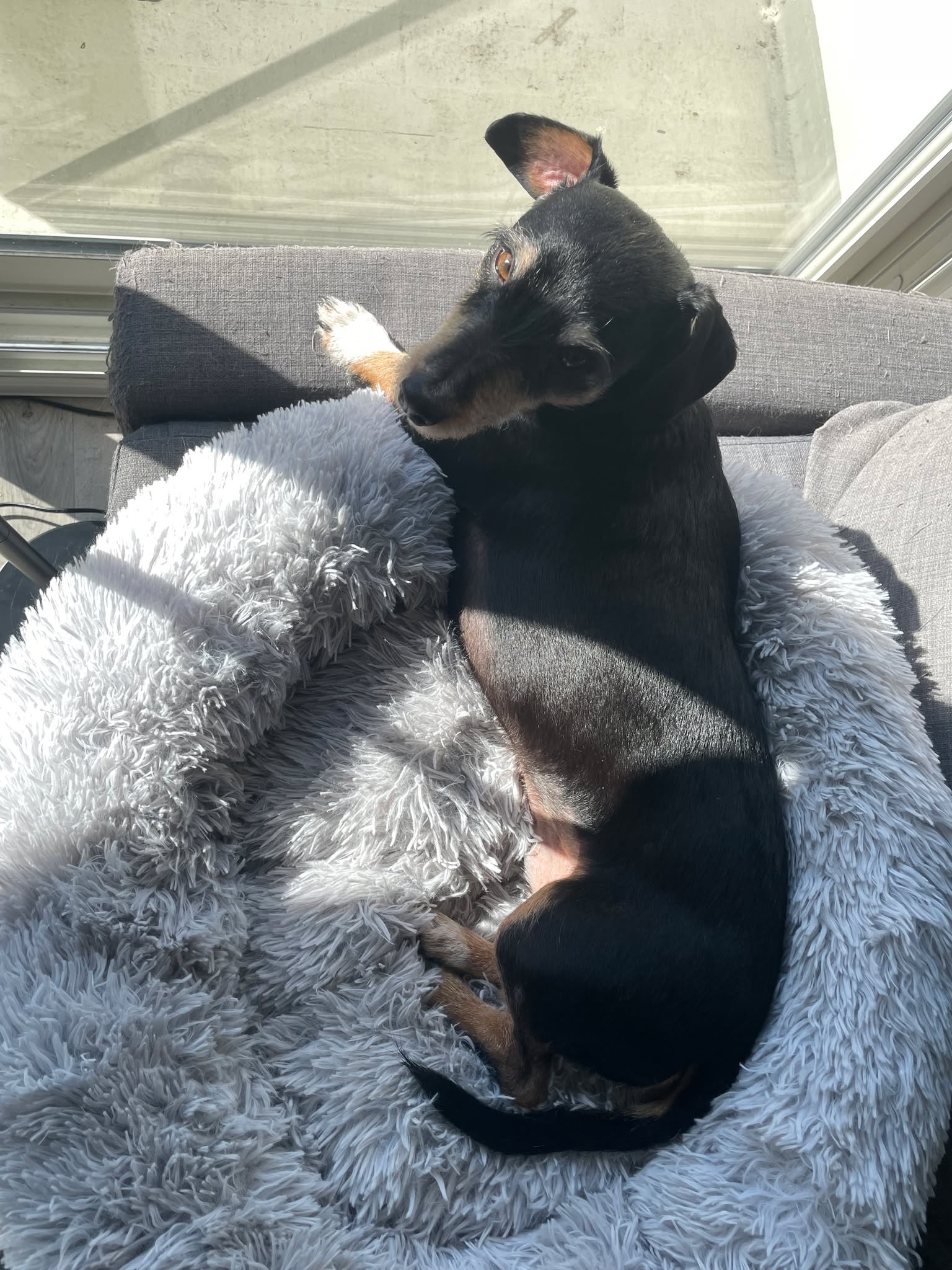 Nems est un adorable croisé teckel de 8 ans, au regard terriblement attachant.