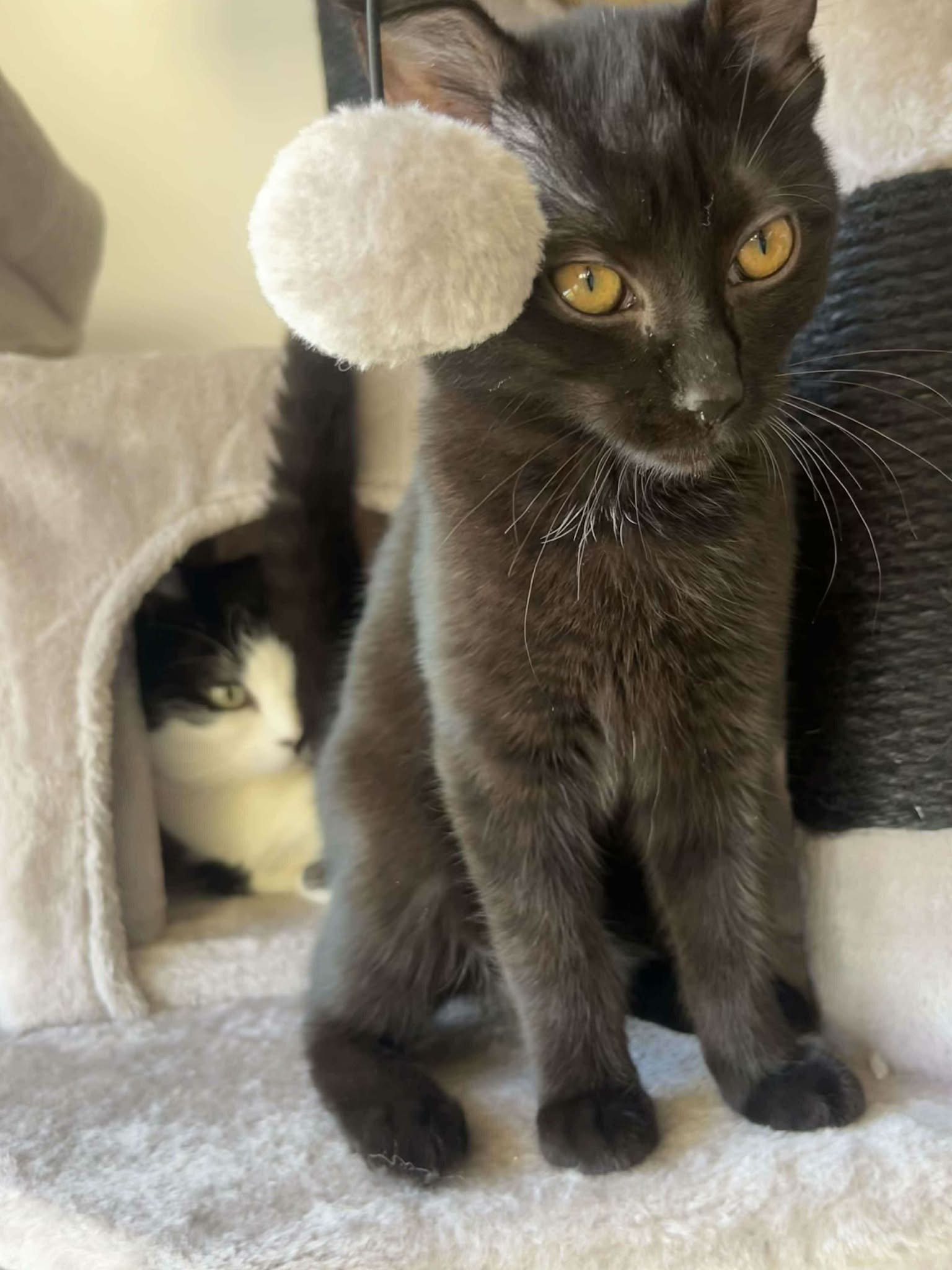 Elle a eu la chance de grandir auprès de sa maman, ce qui en fait un chaton bien dans ses pattounes. Bretzel adore courir, jouer, ramener la balle (et oui !) et vient volontiers chercher une caresse avant de repartir pour de nouvelles aventures.