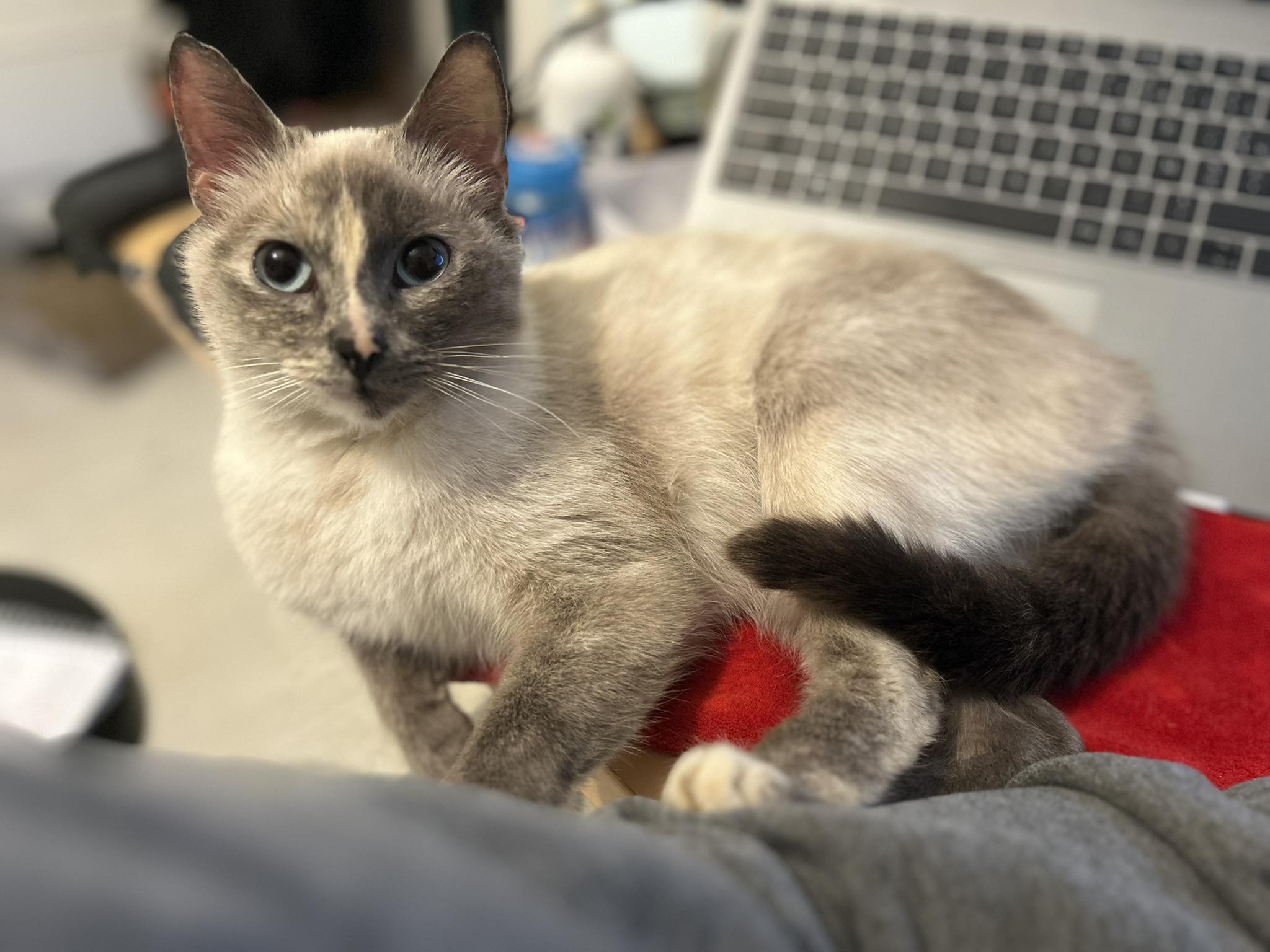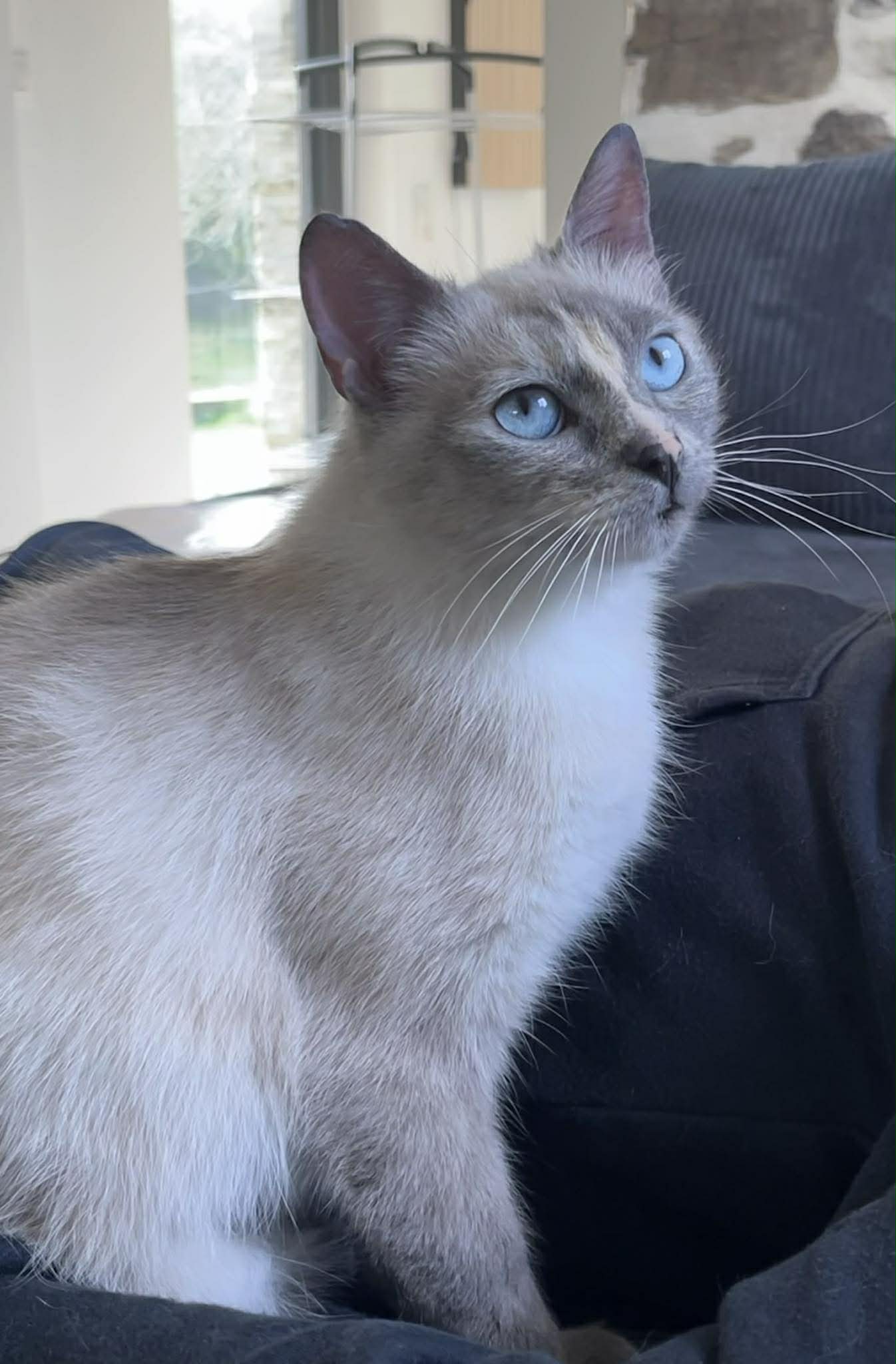 Elle viendra aussi vous solliciter pour des siestes à vos côtés ! Elfe ne semble pas apprécier la présence d’autres chats, nous ne connaissons pas ses ententes avec les chien.