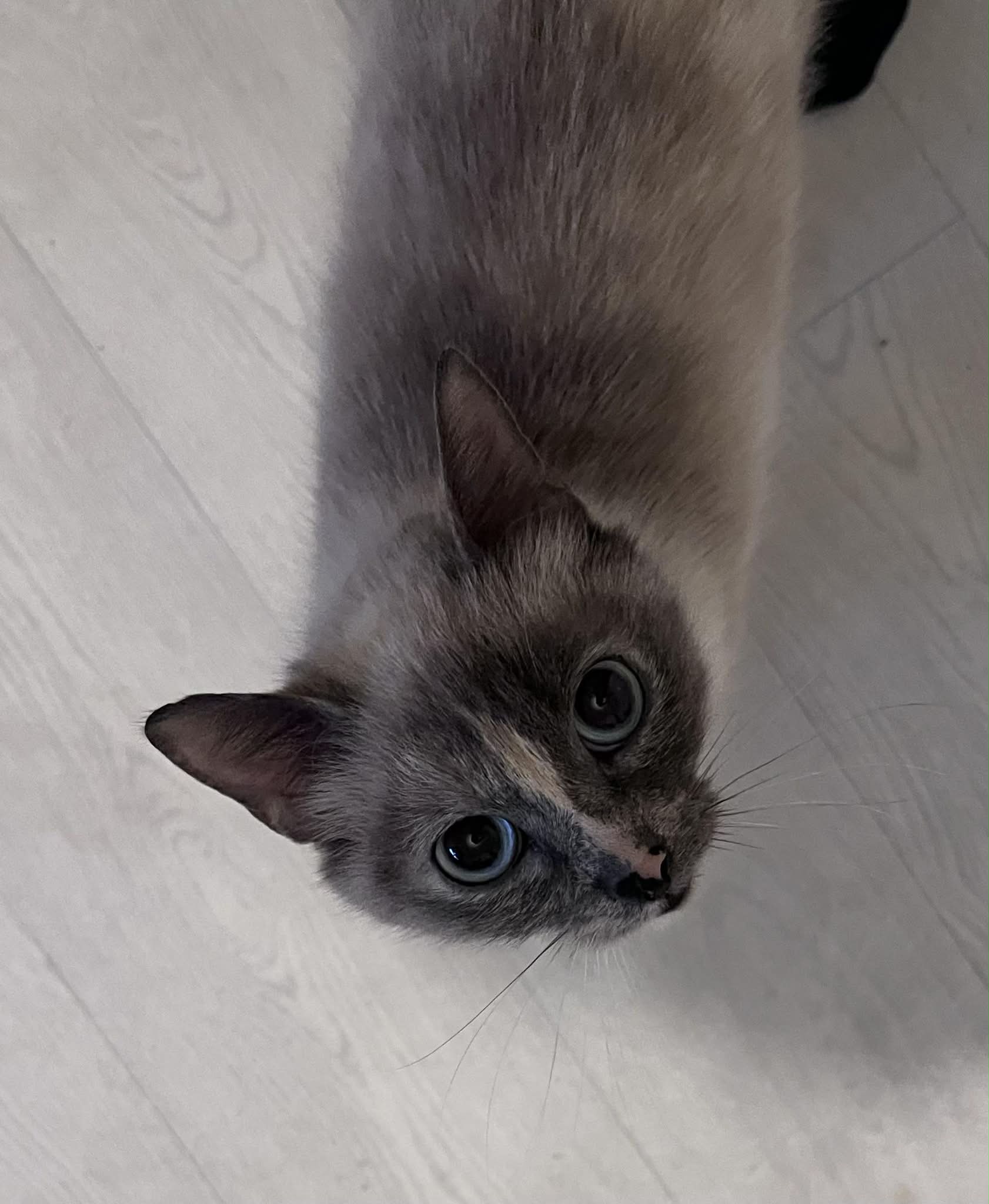 Elfe est une petite minette d’environ 2 ans de petit gabarit mais aussi bavarde et énergique qu'un gros matou