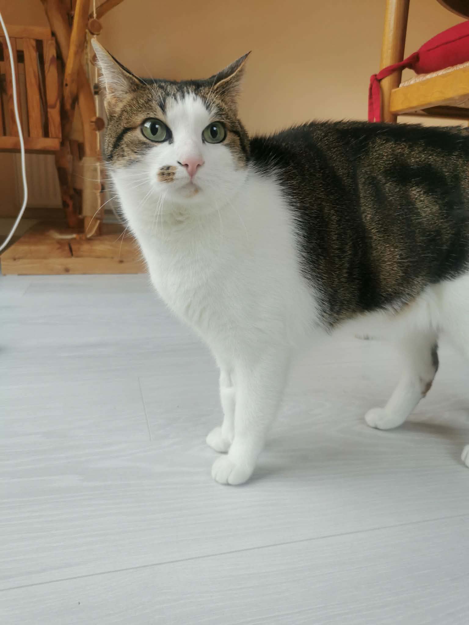 Très affectueux, c’est un véritable chat “pot de colle” : il adore se blottir sur les genoux, recevoir des caresses, dormir dans le lit et passer du temps auprès des humains. Il recherche la proximité et la présence, et saura vous offrir beaucoup de tendresse en retour.