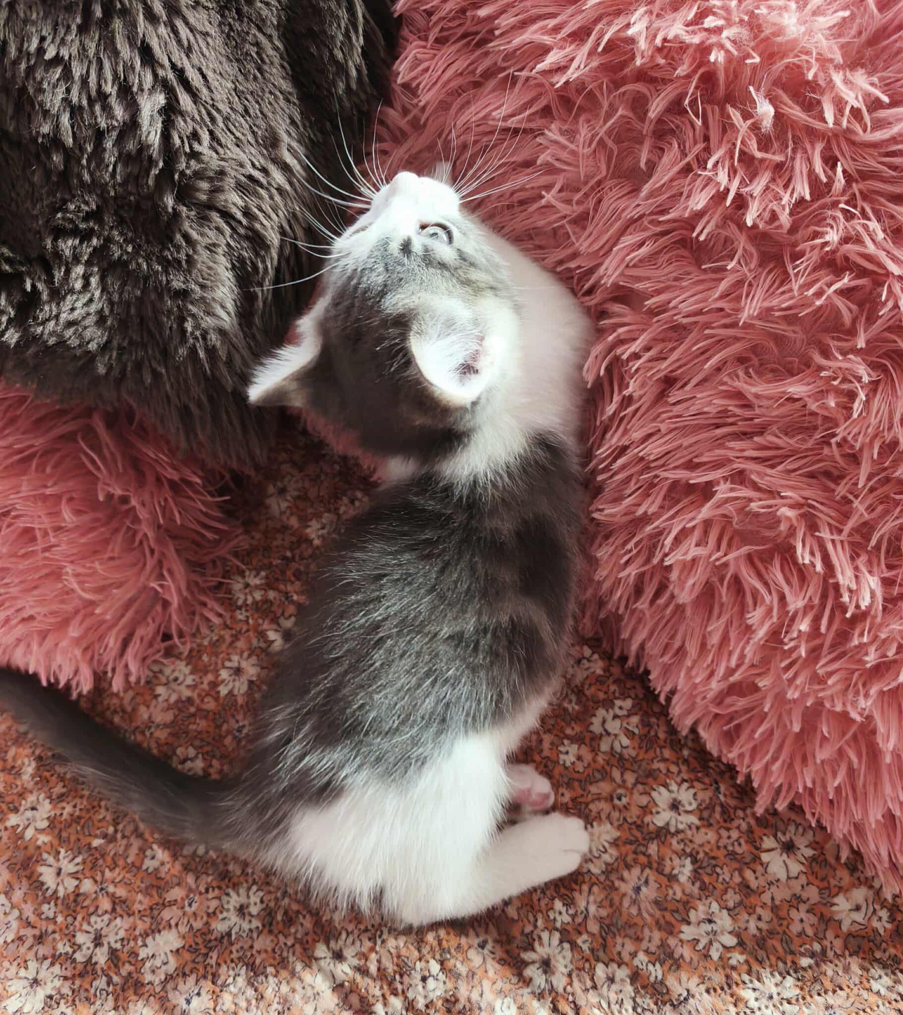 C’est une véritable petite machine à ronrons, toujours en demande de contact et très expressive lorsqu’elle veut des câlins.