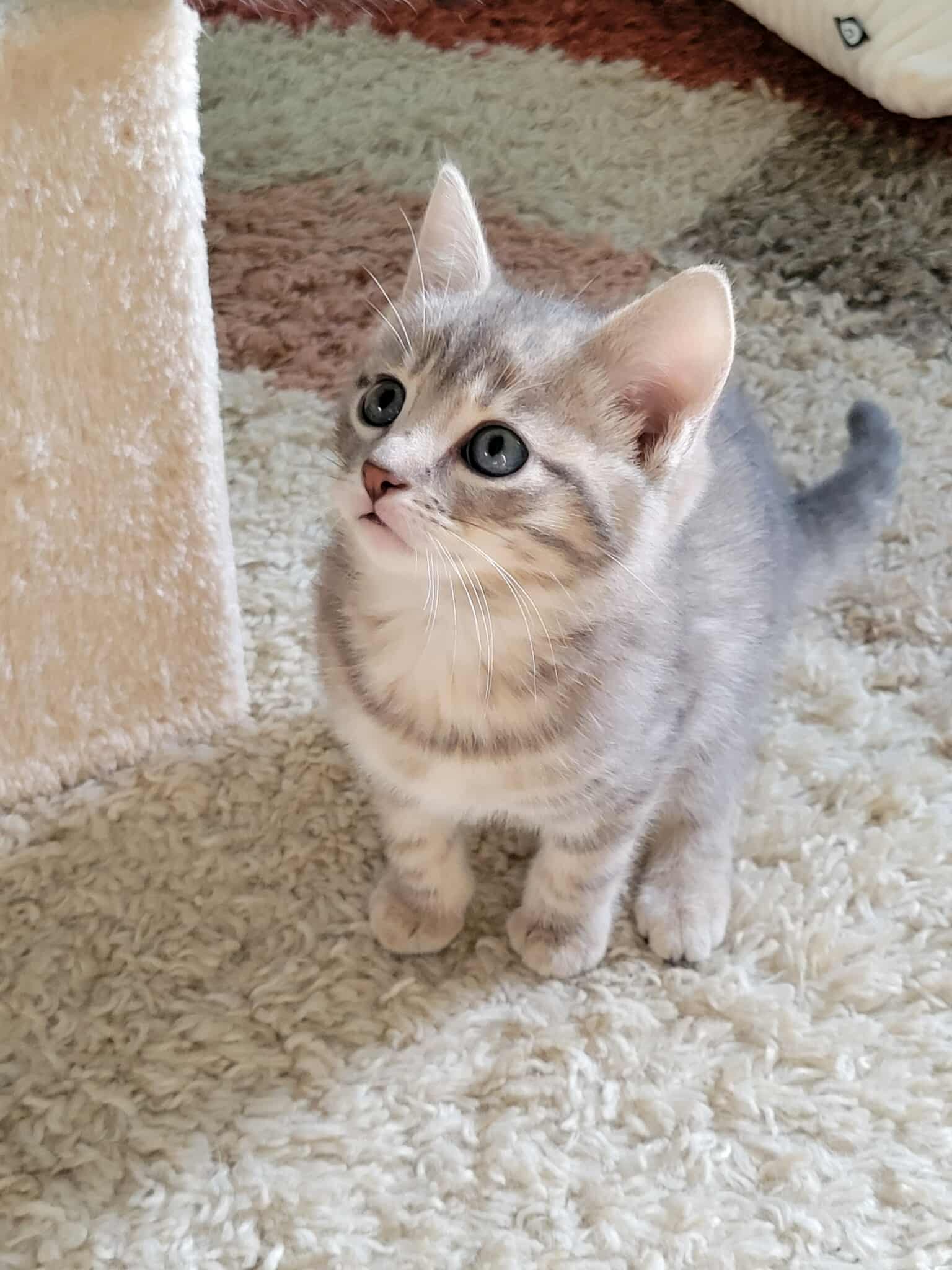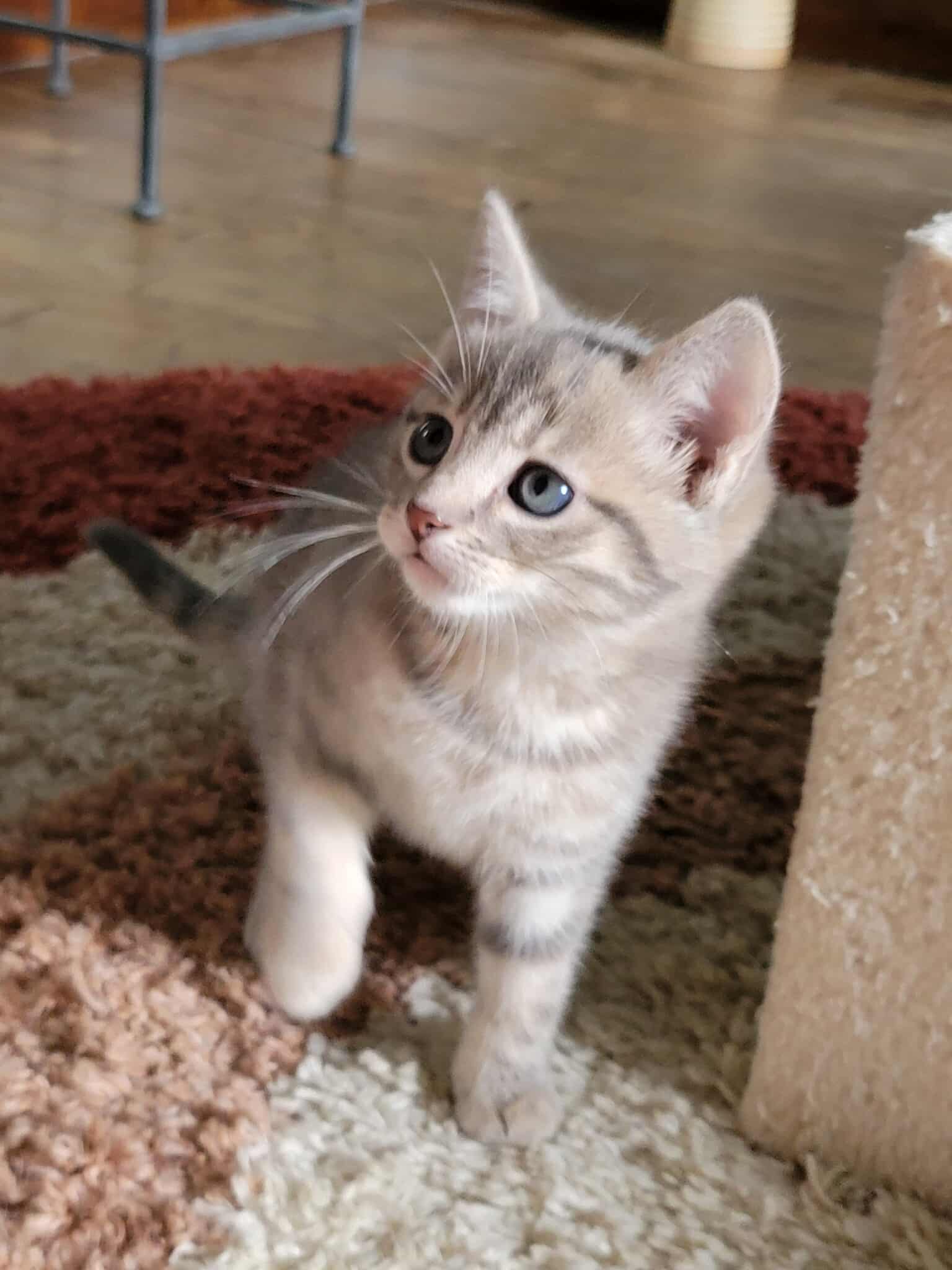 Vif, joueur et gourmand, ce petit bonhomme n’attend qu’un ou des bipèdes pour montrer ses talents de chanteur et de joueur de foot (fan de balles, il vous battra à chaque partie, attention !) et vous lancer des regards remplis d’amour. Il a été élevé avec ses frères par sa maman Ripley (négative fiv/felv), qui lui a appris les bonnes manières et tous les codes félins.