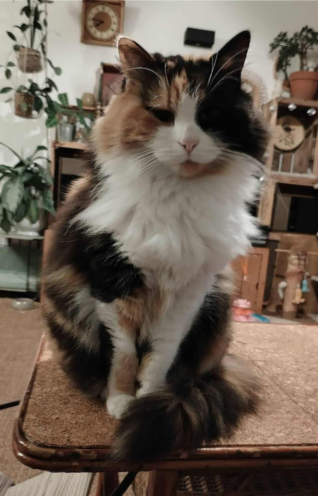 Magnifique chatte tricolore à poils longs, Nona a 7ans, en pleine santé et est prête à trouver sa famille pour la vie.
