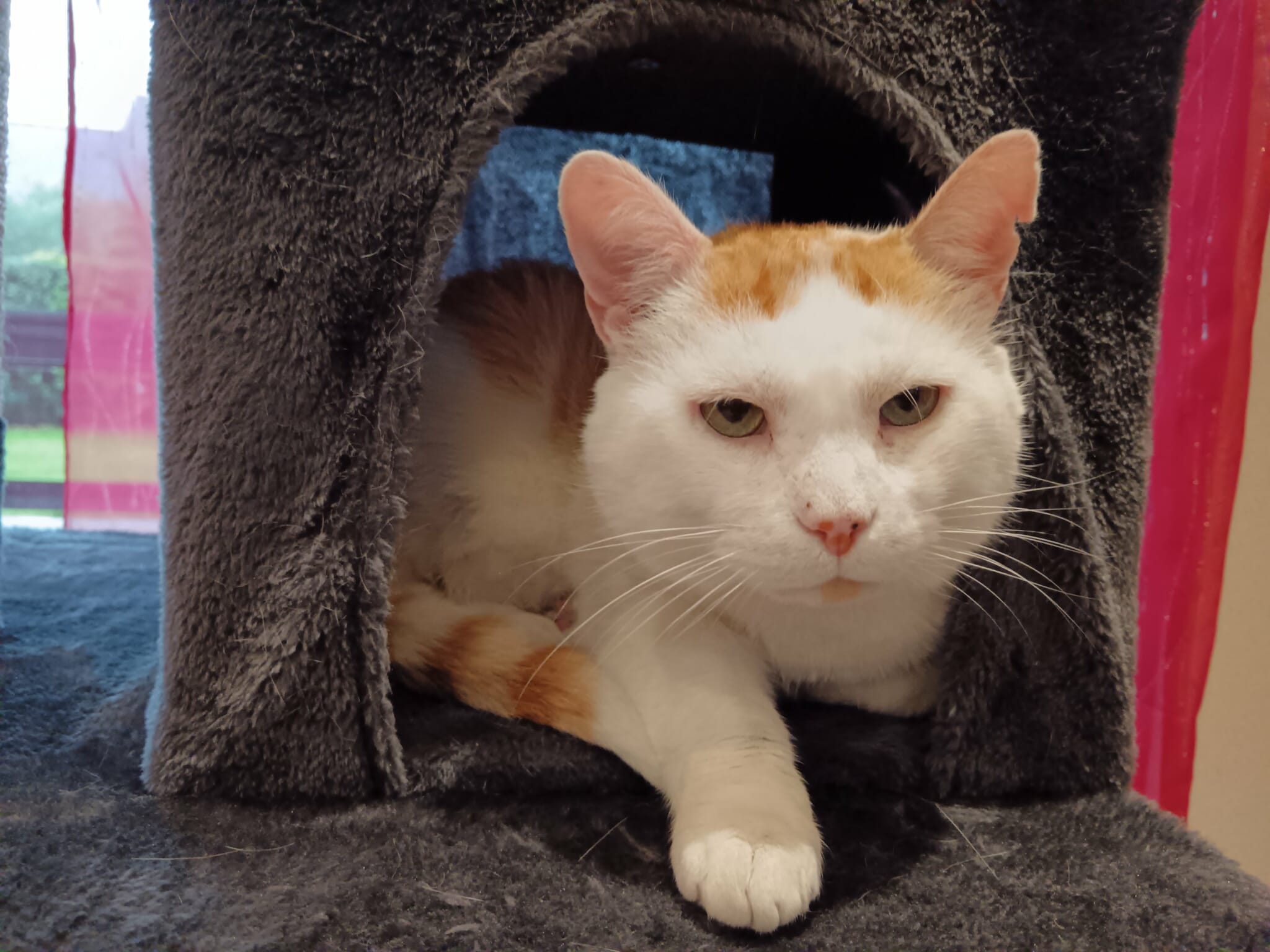Calme, discret et autonome, Pato pourra rester seul sans problèmes lors de vos absences. Il passe beaucoup de temps à se reposer ou dormir sur son arbre à chat, sur les fauteuils, les couvertures... A votre retour, il appréciera que vous preniez soin de lui.