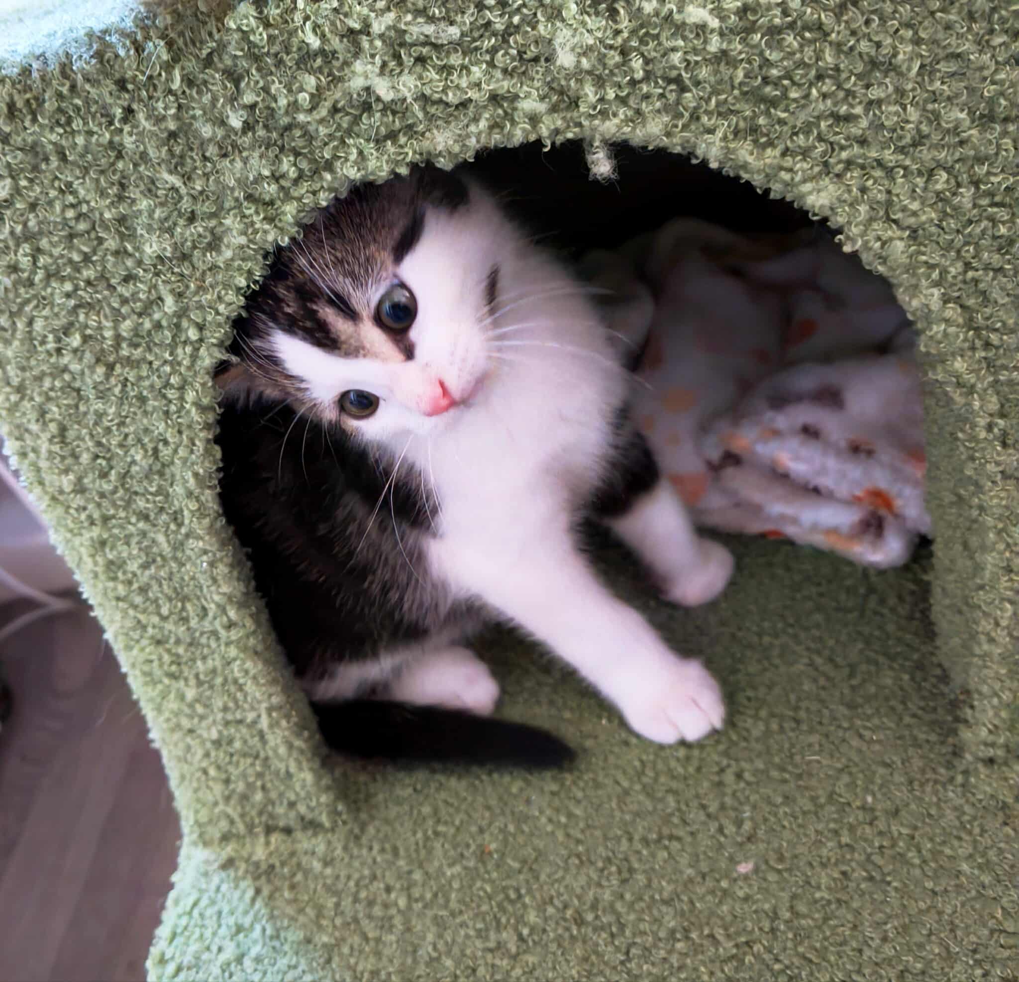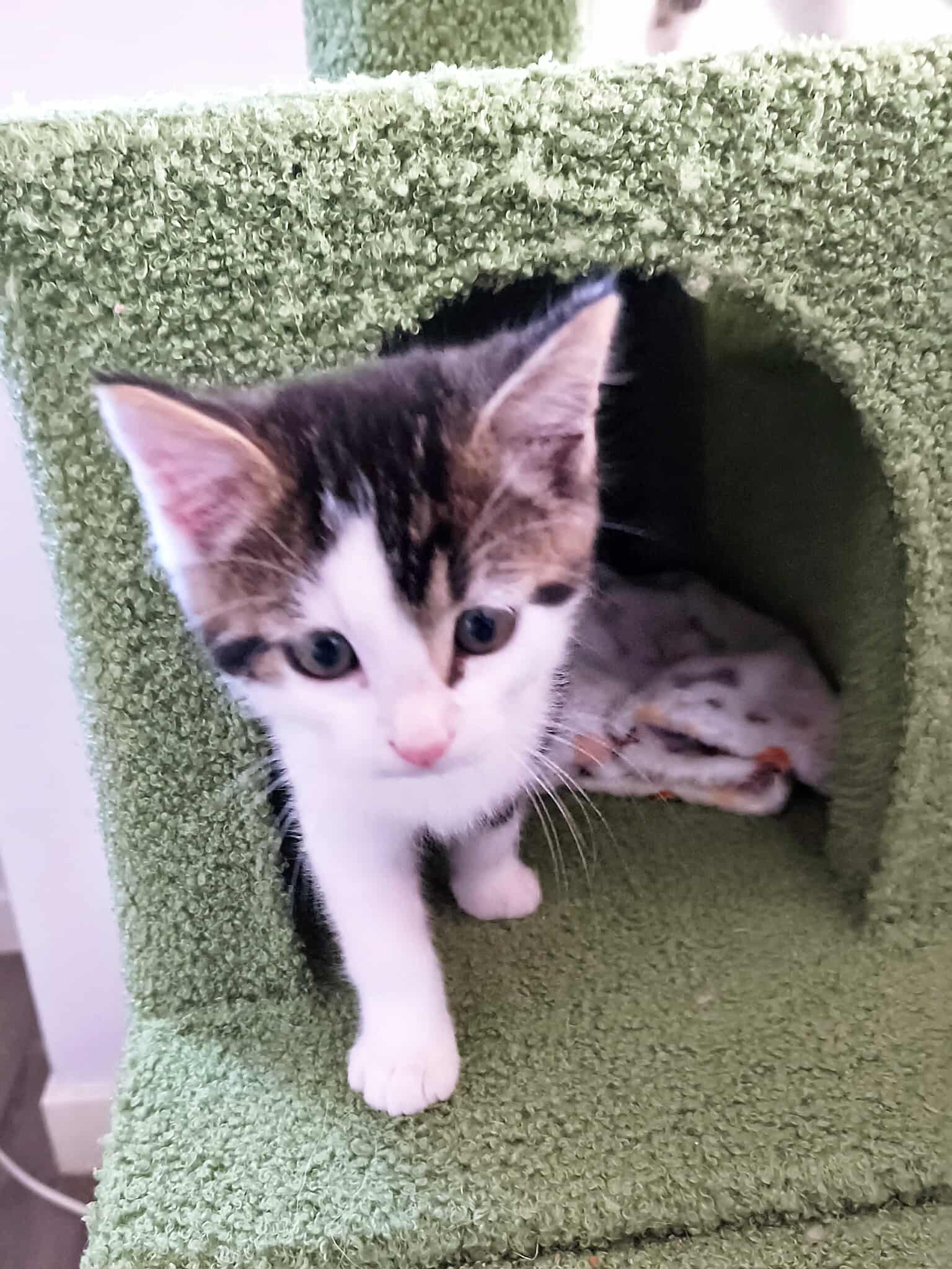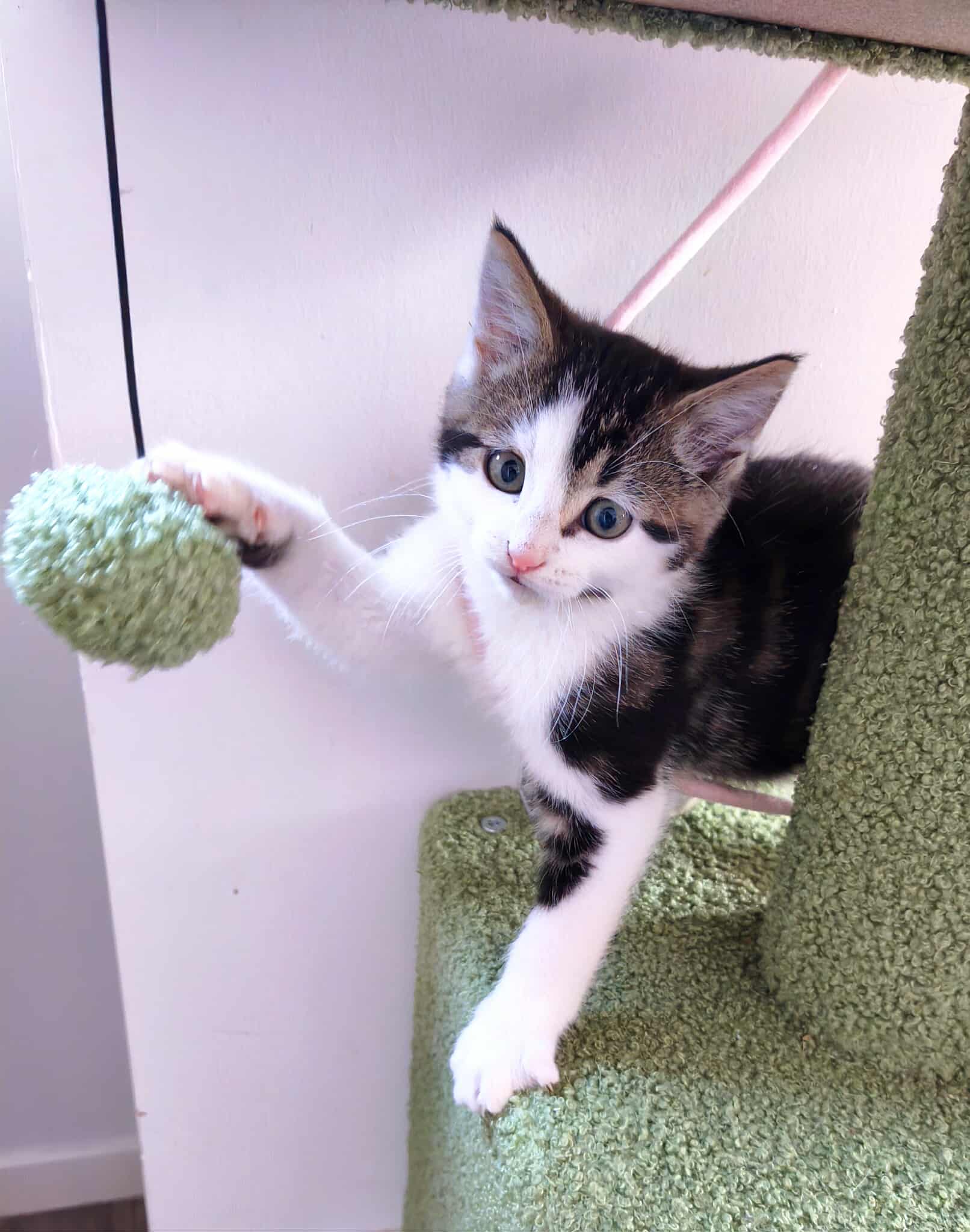 Post It est le petit pépère de la portée. C’est le plus calme du groupe, même s’il reste un chaton avec toute l’énergie qui va avec.