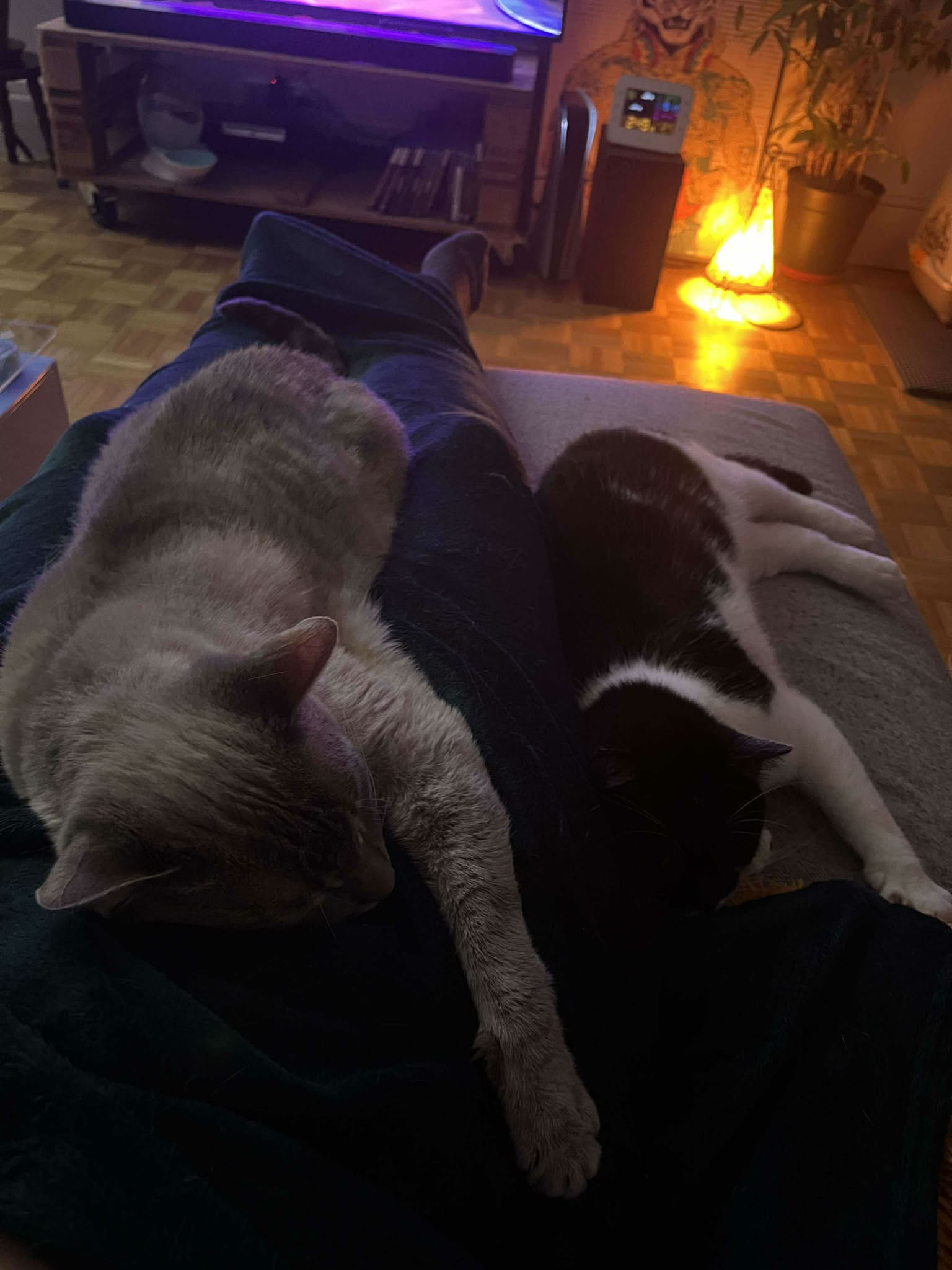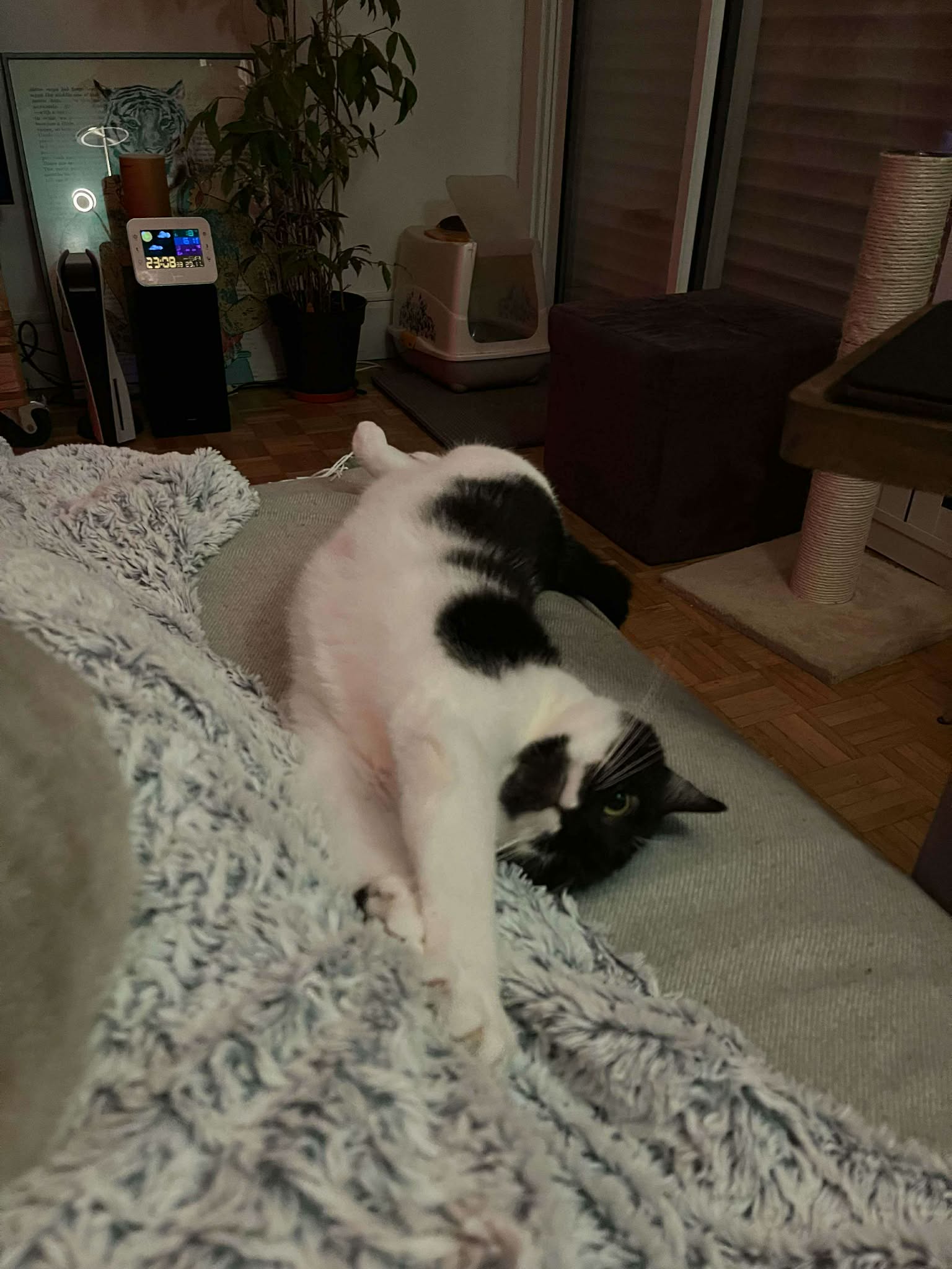 Tornade apprécie également les moments de jeu mais reste assez indépendante. Elle garde un tempérament sensible : les gestes brusques ou les environnements trop agités l’effraient encore. Les jeunes enfants sont donc à éviter. Une vie stable et rassurante est ce qui lui conviendra le mieux.