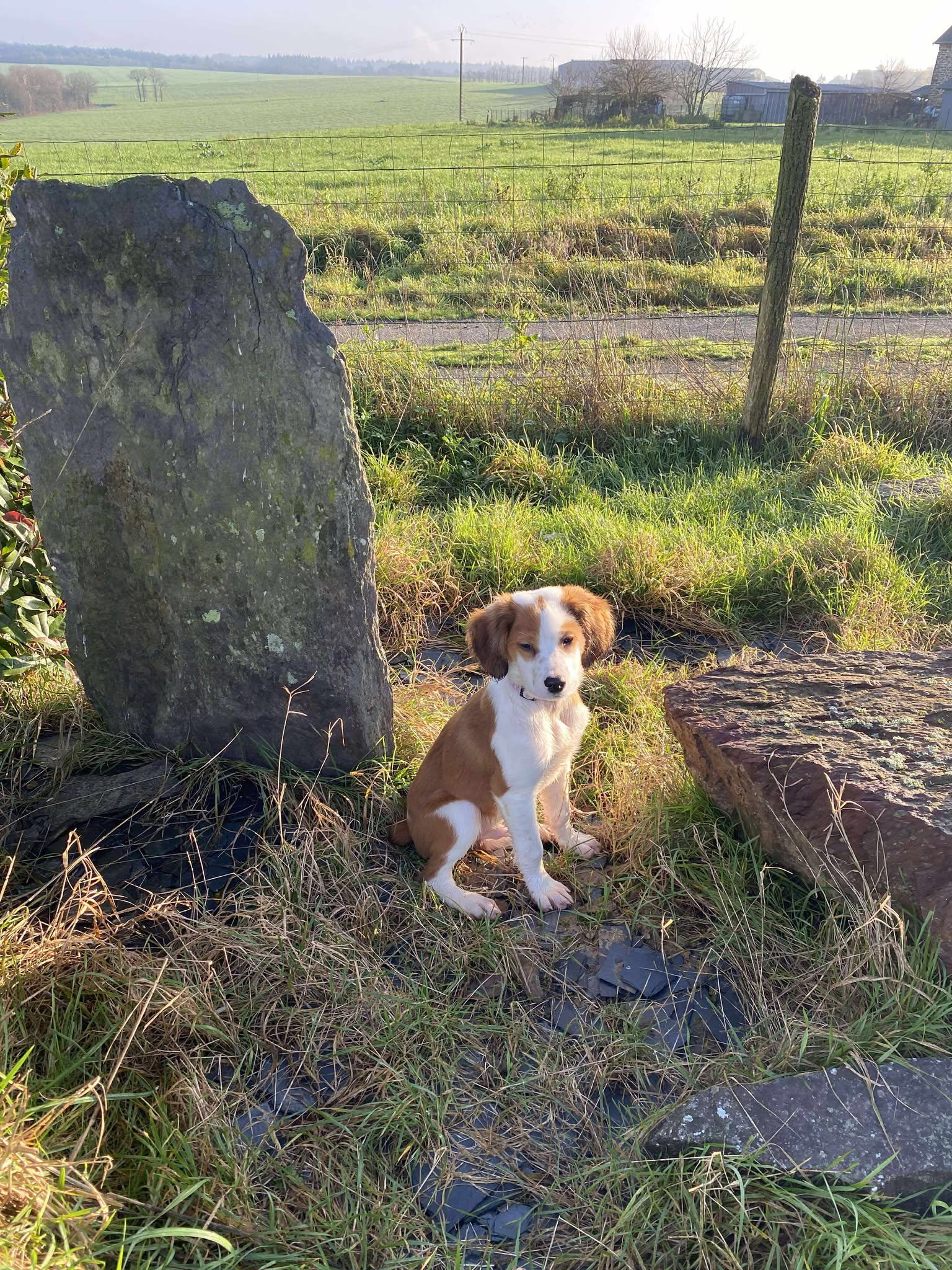 Jinu est un adorable chiot de 3 mois, croisé épagneul, tout doux et très câlin, qui apprécie par-dessus tout son confort… et surtout son panier ! D’un tempérament légèrement craintif, il joue volontiers avec sa sœur mais préfère rester proche de l’humain lors des balades : les grandes explorations en solitaire, très peu pour lui.