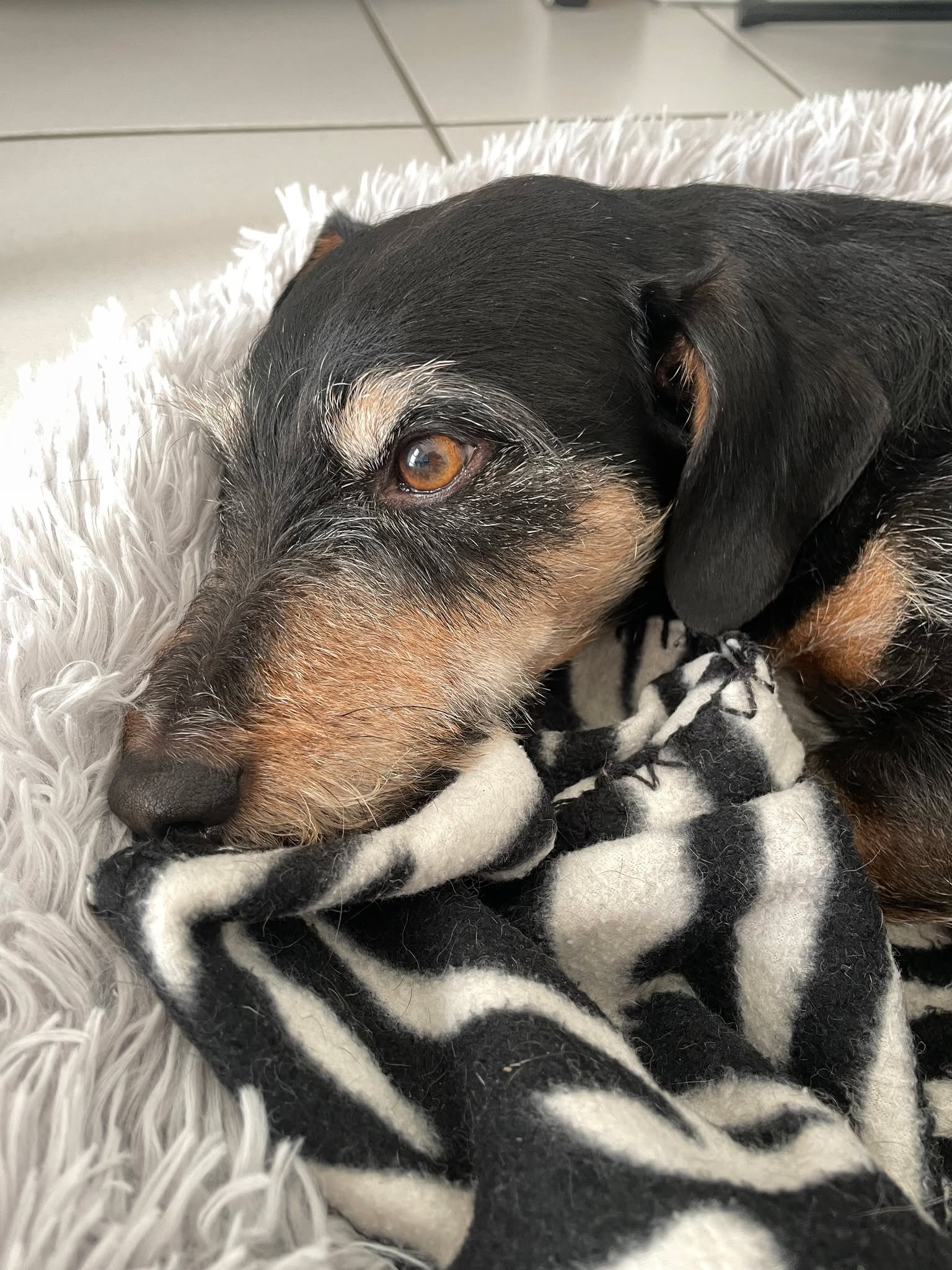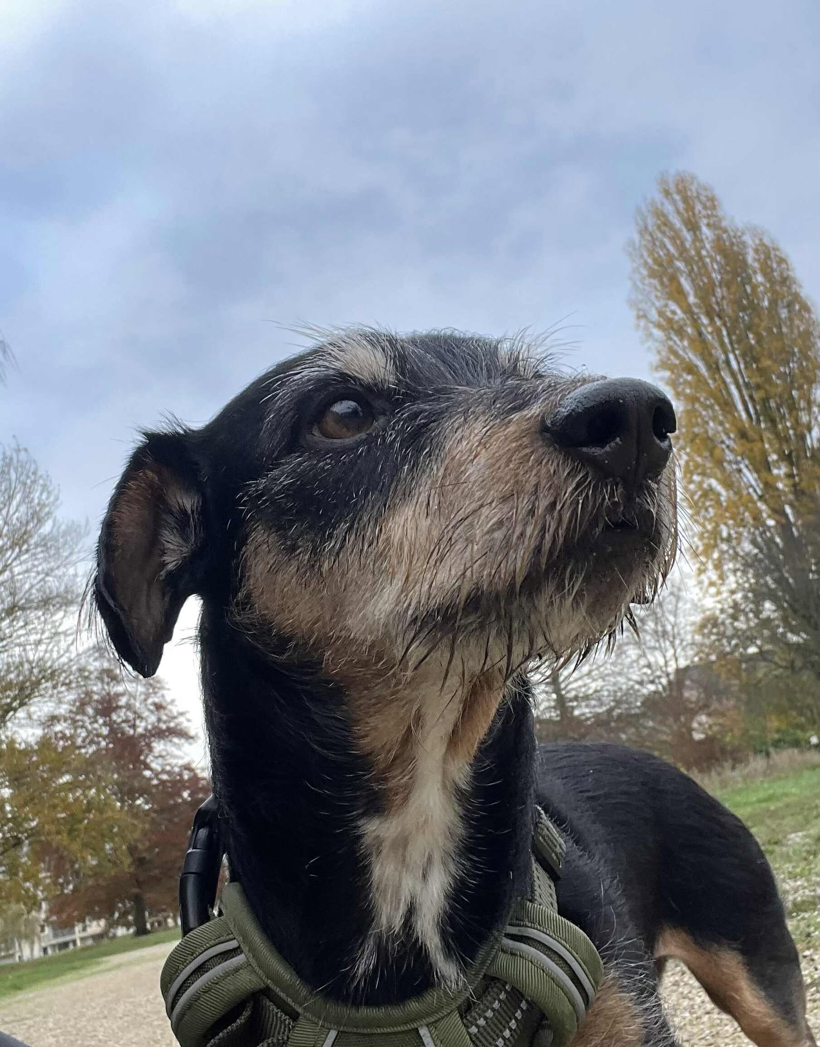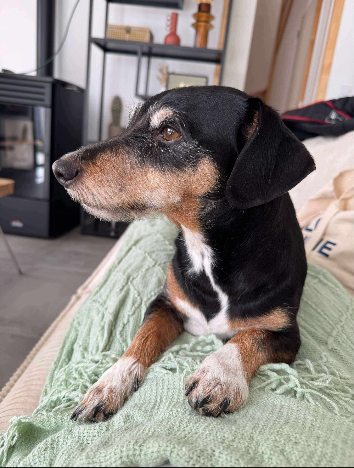 Nems est un adorable croisé teckel de 8 ans, au regard terriblement attachant.
