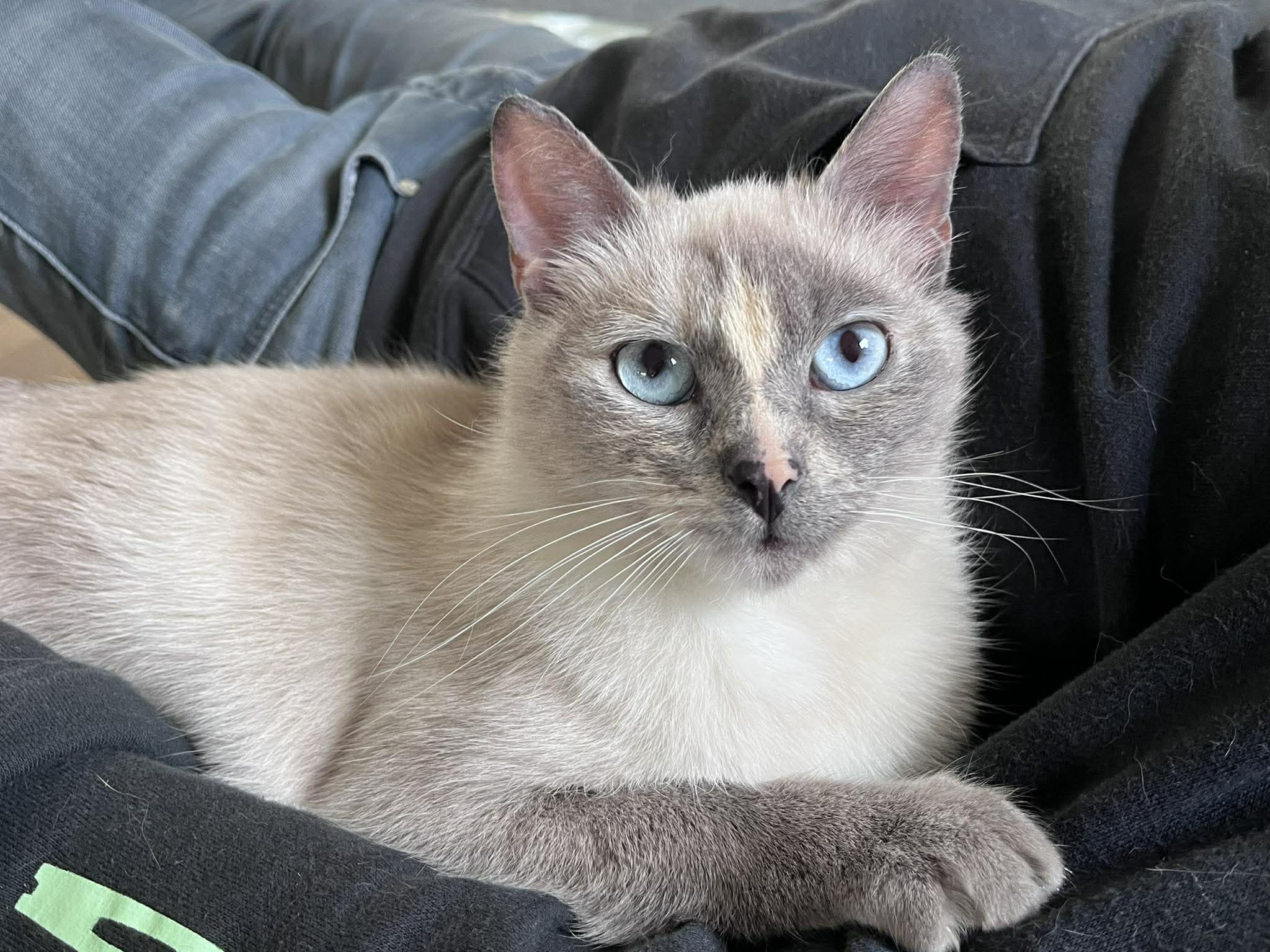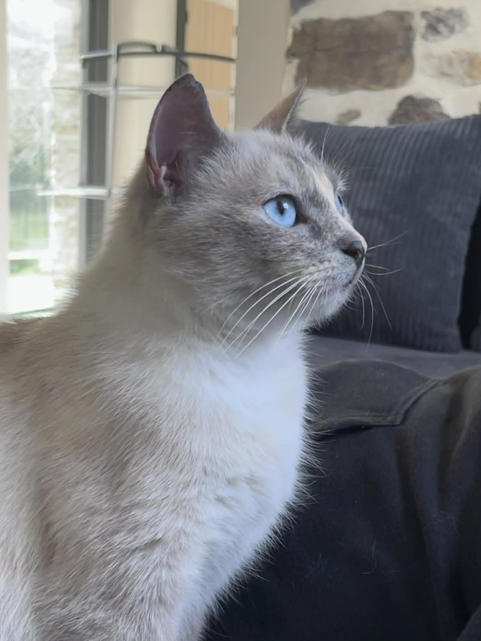 Elle viendra aussi vous solliciter pour des siestes à vos côtés ! Elfe ne semble pas apprécier la présence d’autres chats, nous ne connaissons pas ses ententes avec les chien.