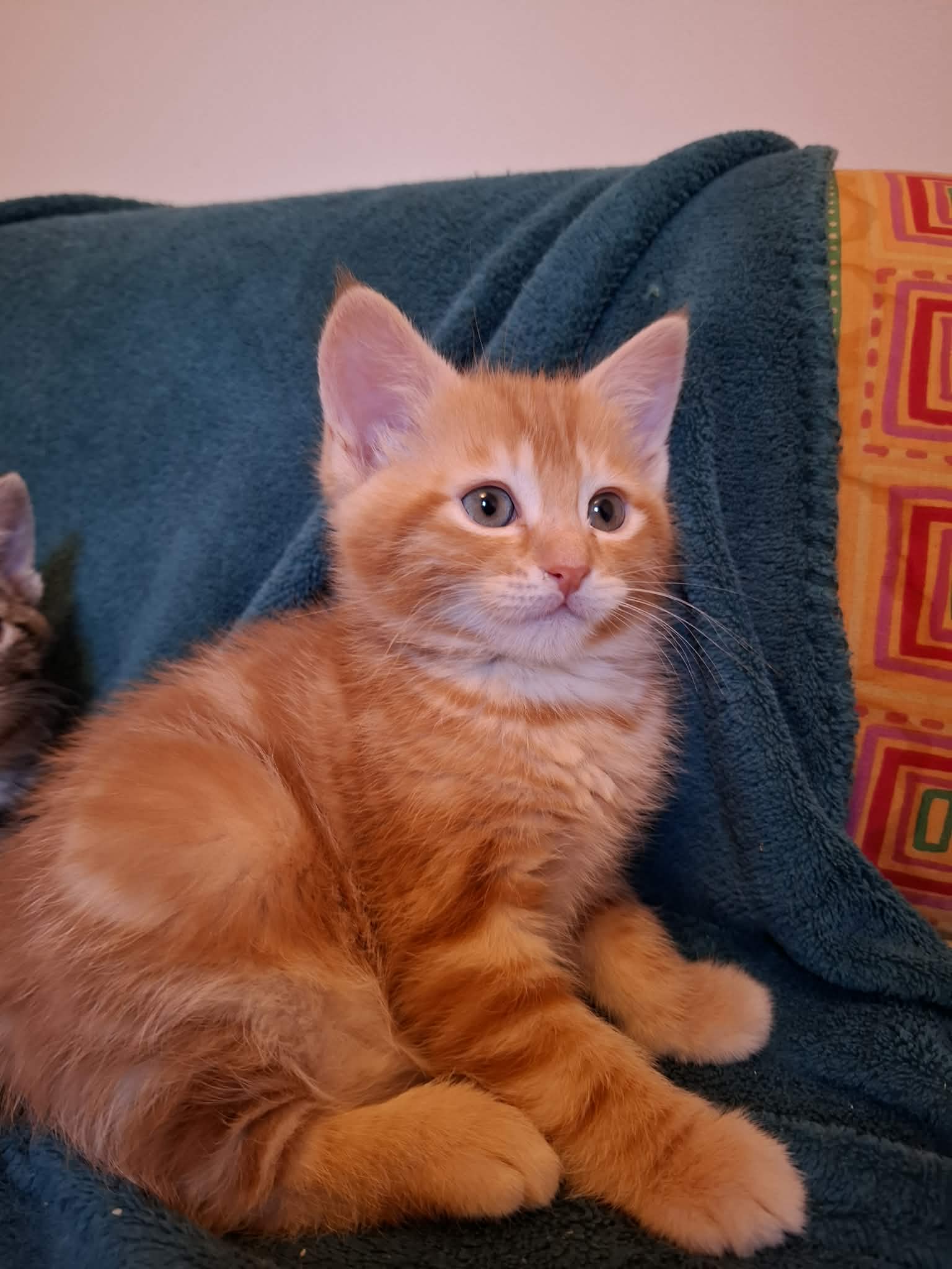 Riri est un chaton joyeux, affectueux, qui aime la compagnie et l’interaction, aussi bien féline qu’humaine. Il conviendra parfaitement à une famille ayant déjà un chat sociable et joueur, prêt à partager jeux et câlins.