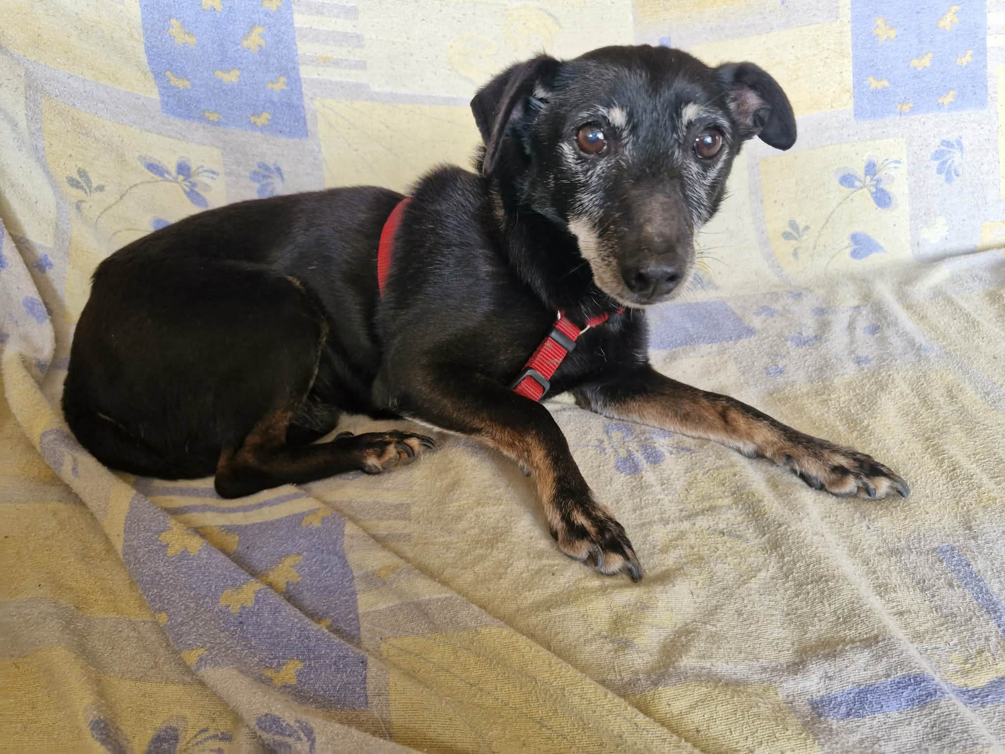 Il est globalement en bonne santé. Il présente simplement un début de cataracte et une surdité, des affections assez fréquentes chez les chiens de son âge, qui ne l’empêchent en rien de profiter pleinement de la vie.